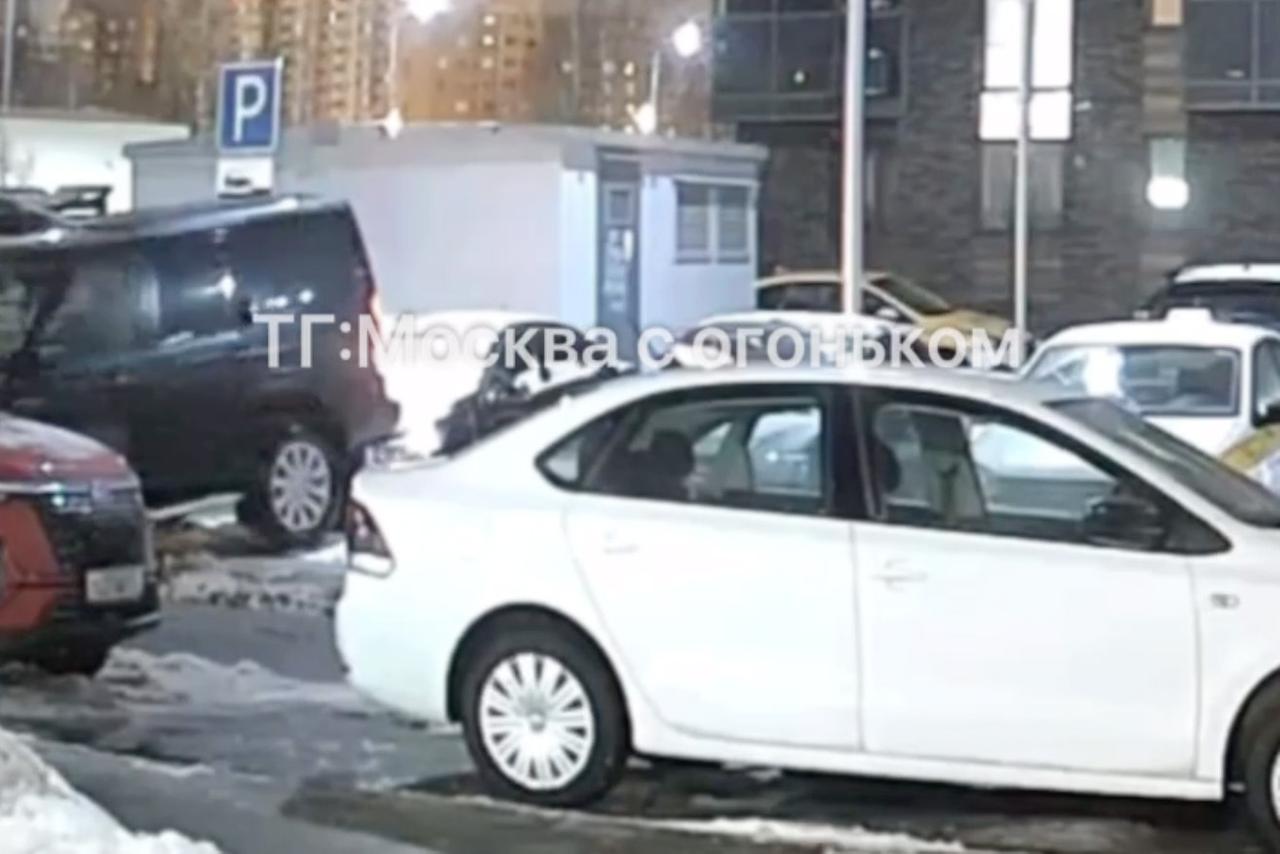 Женщина заехала на другой автомобиль во время парковки и попала на видео, опубликованное в Telegram-канале «Москва с огоньком».
