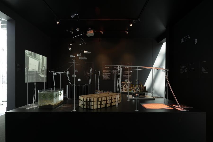 Творческое объединение «Цех» (Saga, Хора и NOWADAYS office) представило «Игру в тезисы» — коллективное исследование «о пользе архитектуры». Главным объектом инсталляции стал общий стол, представляющий собой и экспозиционную плоскость, и место для дискуссии одновременно.