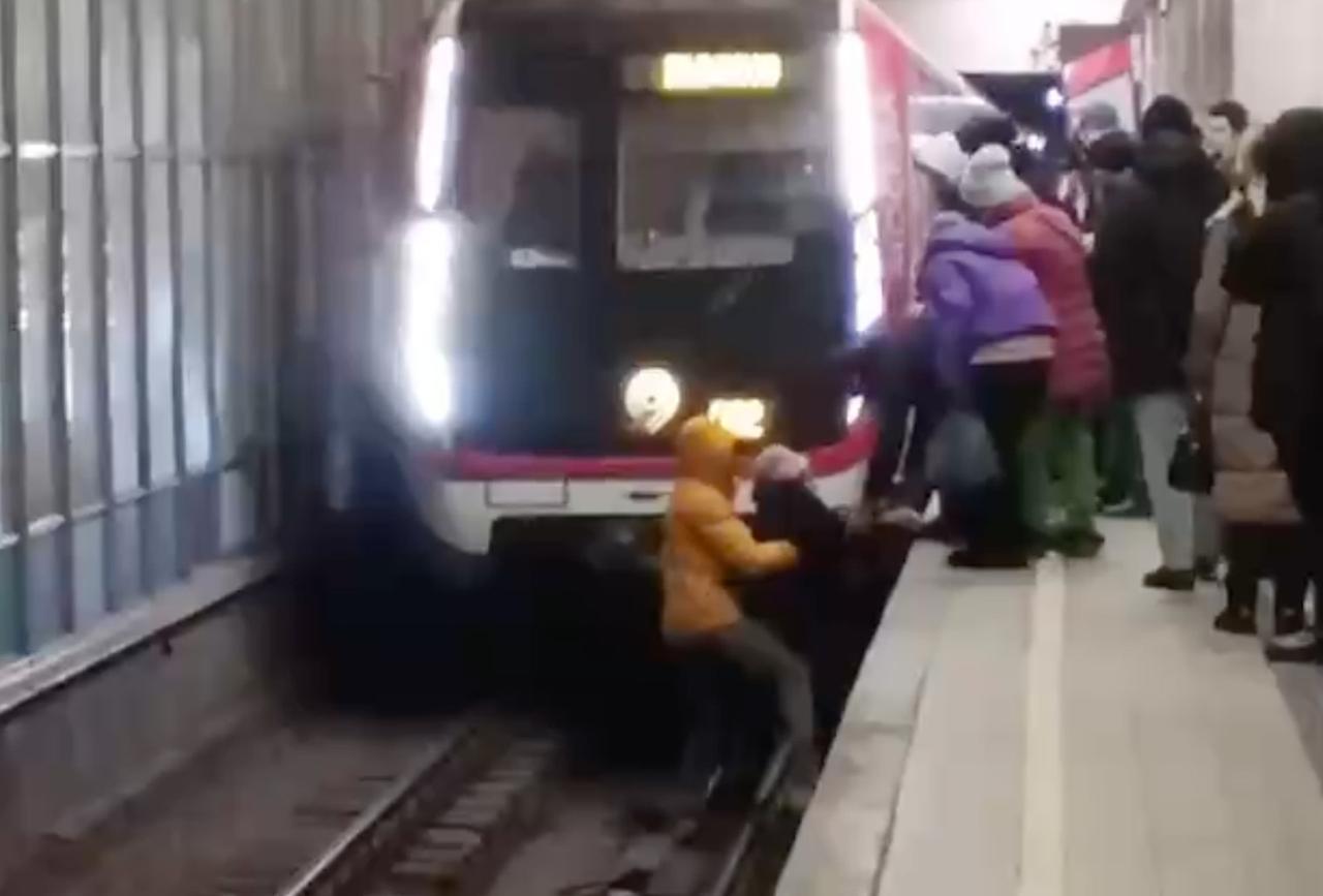 Пассажир спас упавшую на рельсы женщину в московском метро. Снятое очевидцами видео опубликовал Telegram-канал «МК: срочные новости».