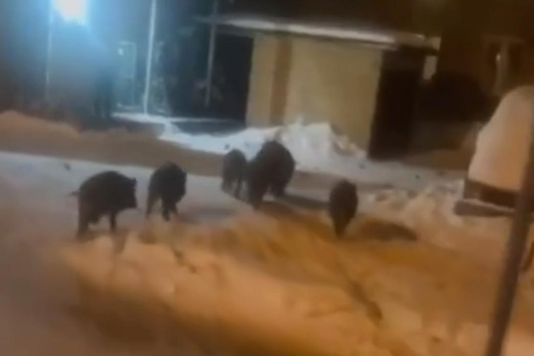 Стадо диких кабанов на улице в Подмосковье попало на видео