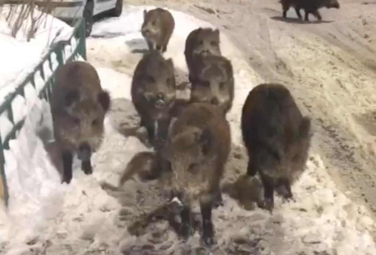 Стадо кабанов у многоэтажки в Подмосковье попало на видео