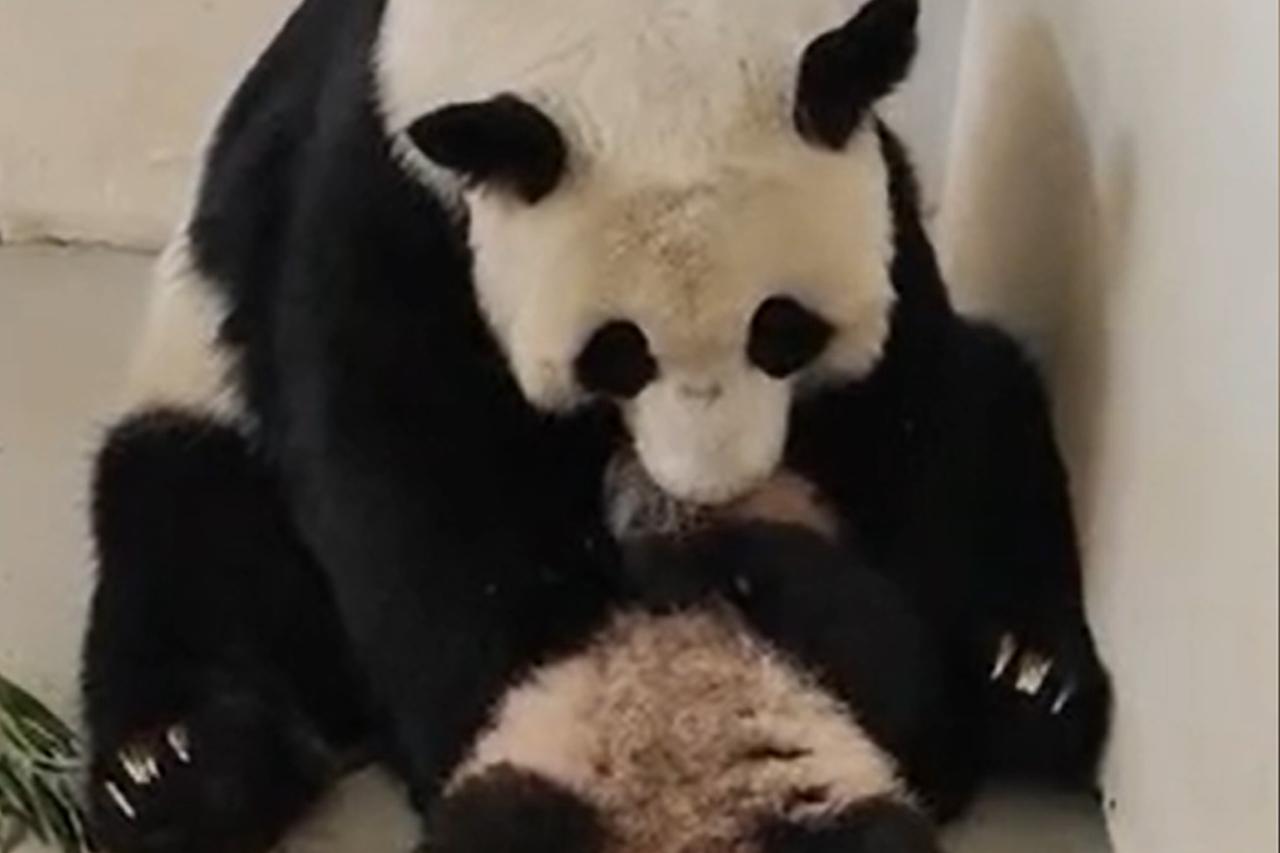 Утренние поцелуи маленькой панды с мамой попали на видео в Московском зоопарке