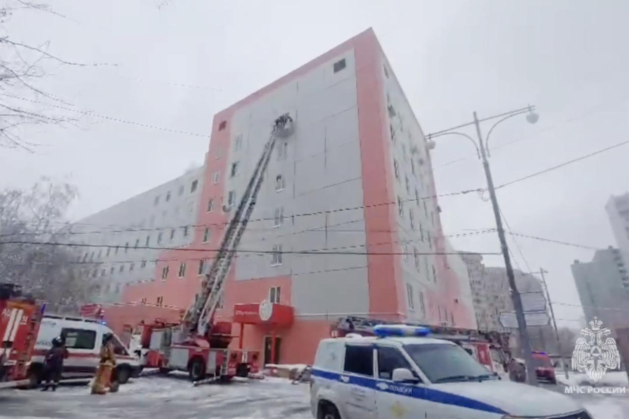 Пожар на седьмом этаже медицинского учреждения произошел утром 9 апреля. Возгорание на площади 50 квадратных метров потушили за 15 минут. Сотрудники МЧС эвакуировали из здания 39 человек, из них шесть спустились по автолестнице.