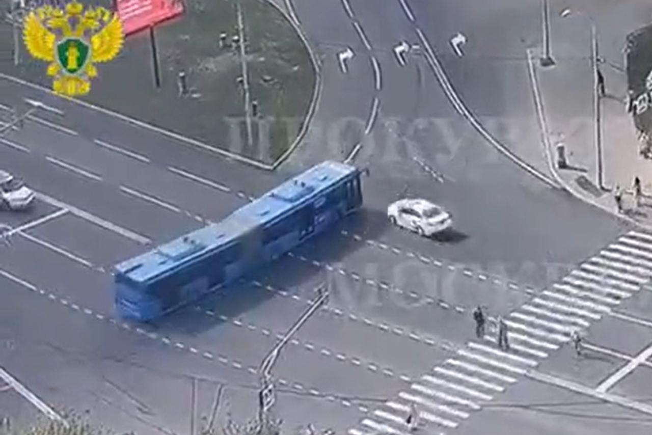 На Широкой улице в Москве водитель автомобиля каршеринга проигнорировал запрещающий сигнал светофора, на большой скорости пересек перекресток и въехал в автобус. Видеозаписью с места событий поделилась столичная прокуратура.