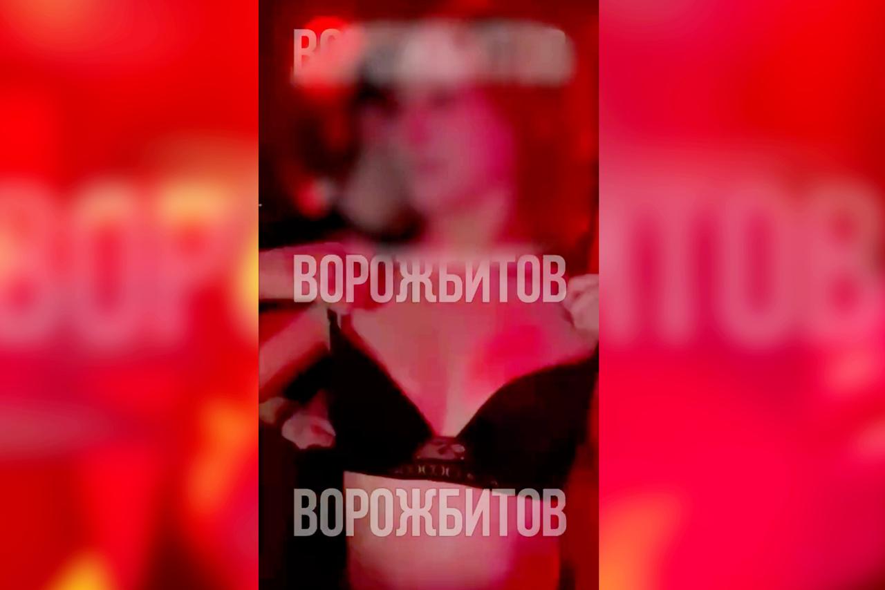 На кадры попал момент, когда с посетительницы бара сначала снимают топик, после чего снимают бюстгальтер. Предмет нижнего белья она отдала бармену, после чего девушку, которая на тот момент была уже топлес, облили шампанским из бутылки. Остальные посетители заведения наблюдали за происходящим.