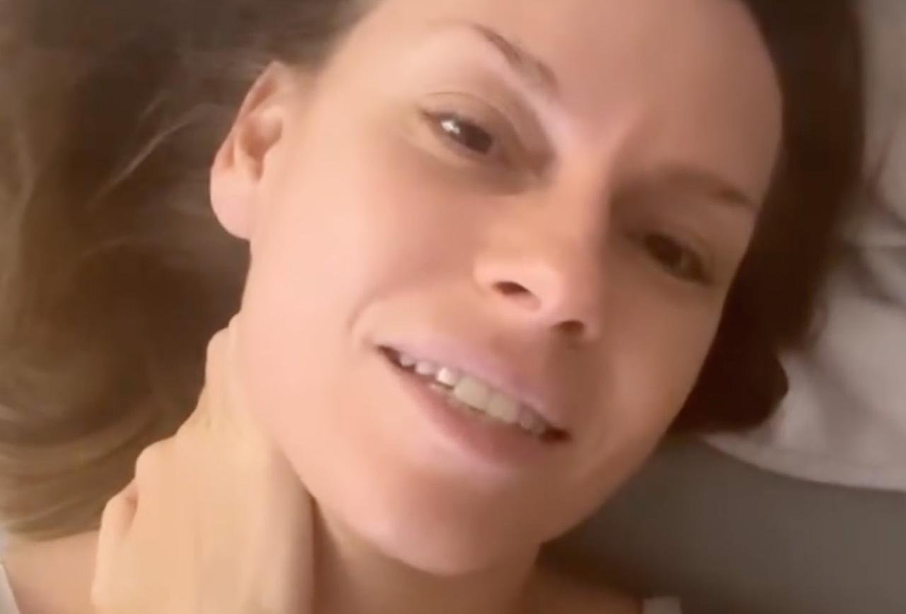 Артистка записала видео, лежа в кровати, и показала лицо крупным планом. В ролике она появилась перед подписчиками без макияжа и с распущенными волосами, в майке бежевого цвета, под которой не было нижнего белья.