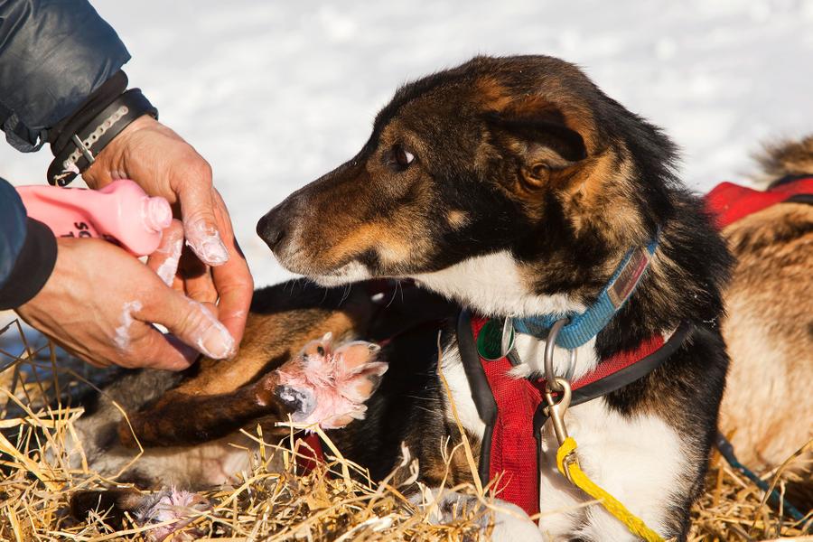 В случае появления у питомца трещин или ран, Голубев рекомендует промыть их водой и не давать собаке вылизывать их, иначе она может отравиться. После помывки нужно насухо вытереть лапы и воспользоваться заживляющими и смягчающими средствами для увлажнения. При обнаружении открытых ран или язв следует незамедлительно обратиться к ветеринару.