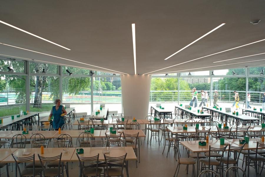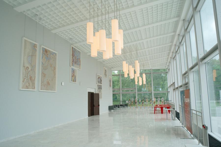 Зал с имитацией лампами дневного света оригинальных зенитных фонарей. Восстановление оригинальной конструкции с настоящим дневным светом технически затруднительно — требует перестройки здания