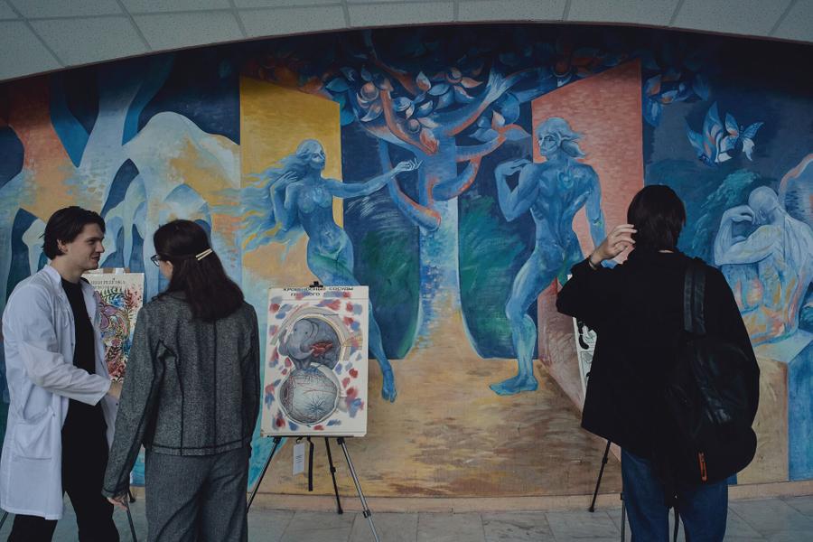 Для мозаик на стенах библиотеки 2-го медицинского художники выбрали вечные темы — «Рождение», «Спасение», «Надежда» и «Исцеление». При этом изображения получились яркими, необычными и близкими по стилистике магическому реализму. Мозаики были размещены не только на самих стенах библиотеки, но и на углах здания. Художники вдохновлялись реальными историями людей — только что родившей ребенка женщины, солдата, получившего травму, человека, перенесшего операцию на головном мозге.