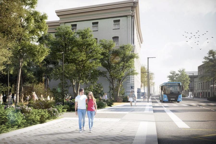 У храма Успения запланировано поднятие проезжей части и тротуара, в первую очередь, ради удобства пешеходов. Мощение, зелень, лавочки, скамейки, новый режим освещения, создающий теплый приятный свет, — все это позволит создать там комфортное общественное пространство.